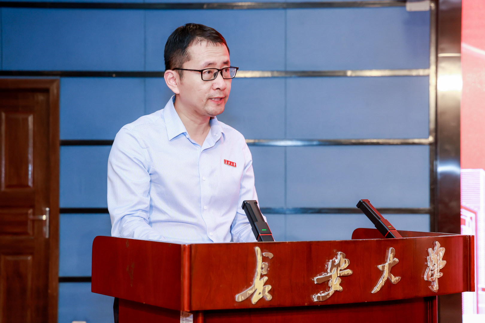 导师代表杨旭对毕业生寄语。他以《面向未来,挥斥方遒,活出精彩》为主题讲授最后一课,指出要努力工作,保持进取心,保持韧性,加强思辨思维,加强换位思考,找准自身的核心价值,为团队创造价值,实现自我抱负;希望同学们步履所致,皆有繁花似锦;半生归来,仍是当初少年。