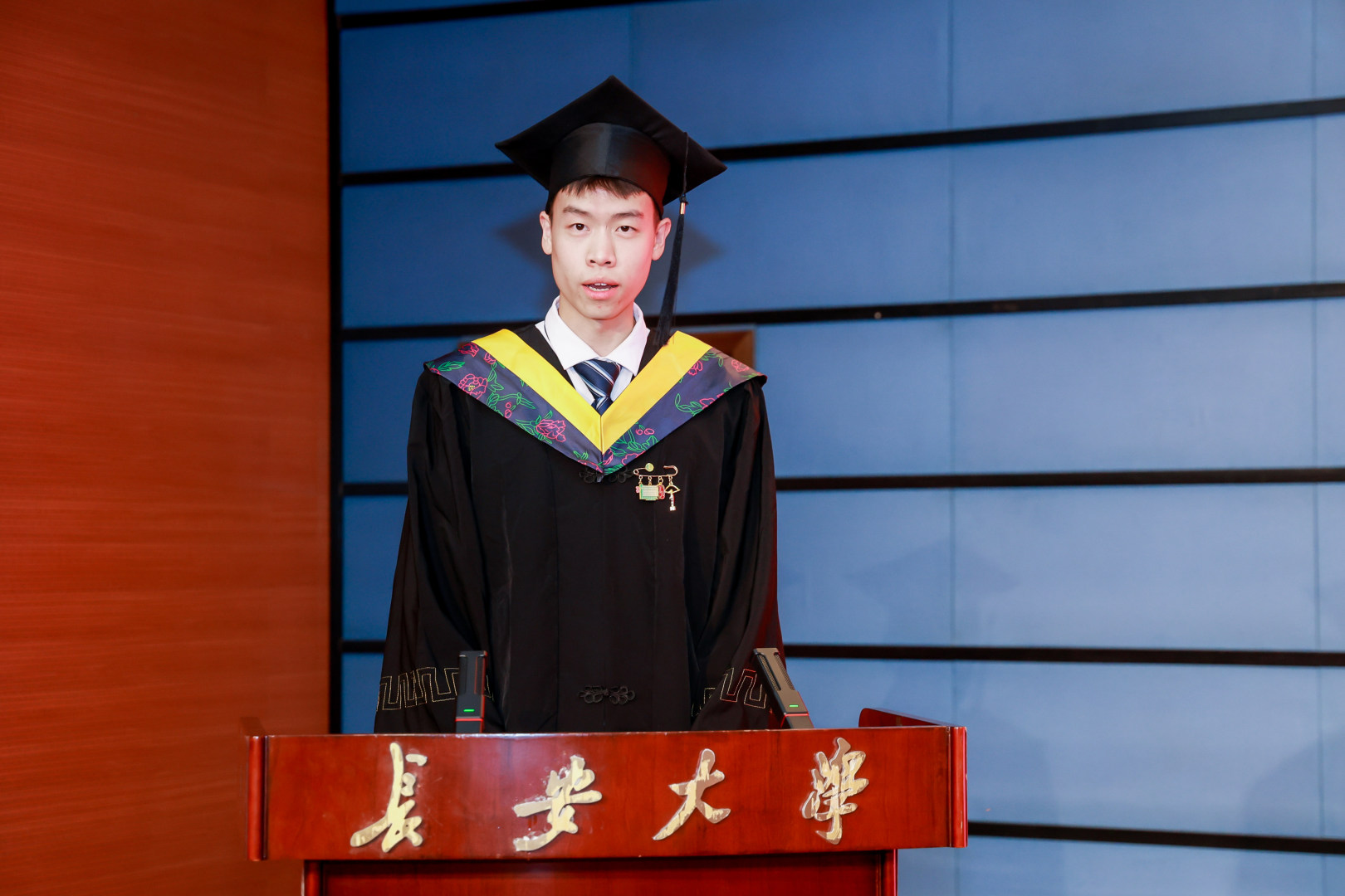 在校生代表张子昊希望同学们以学长学姐为榜样,在今后的学习生活中,用自己的实际行动为母校增光、为人生添彩、为国家和社会贡献青春力量!