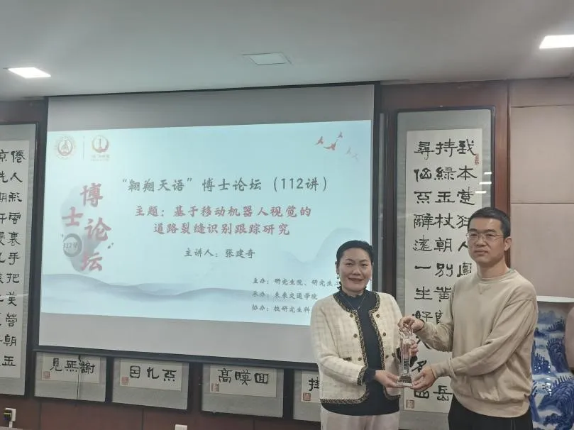 承办,校研究生科学技术协会协办的“翱翔天语”博士论坛第112讲暨“研途领航”系列论坛(第1讲)在南校区北院学术交流中心举办。信息工程学院2022级博士研究生张建奇受邀作了题为《基于移动机器人视觉的道路裂缝识别跟踪研究》的报告,吃瓜