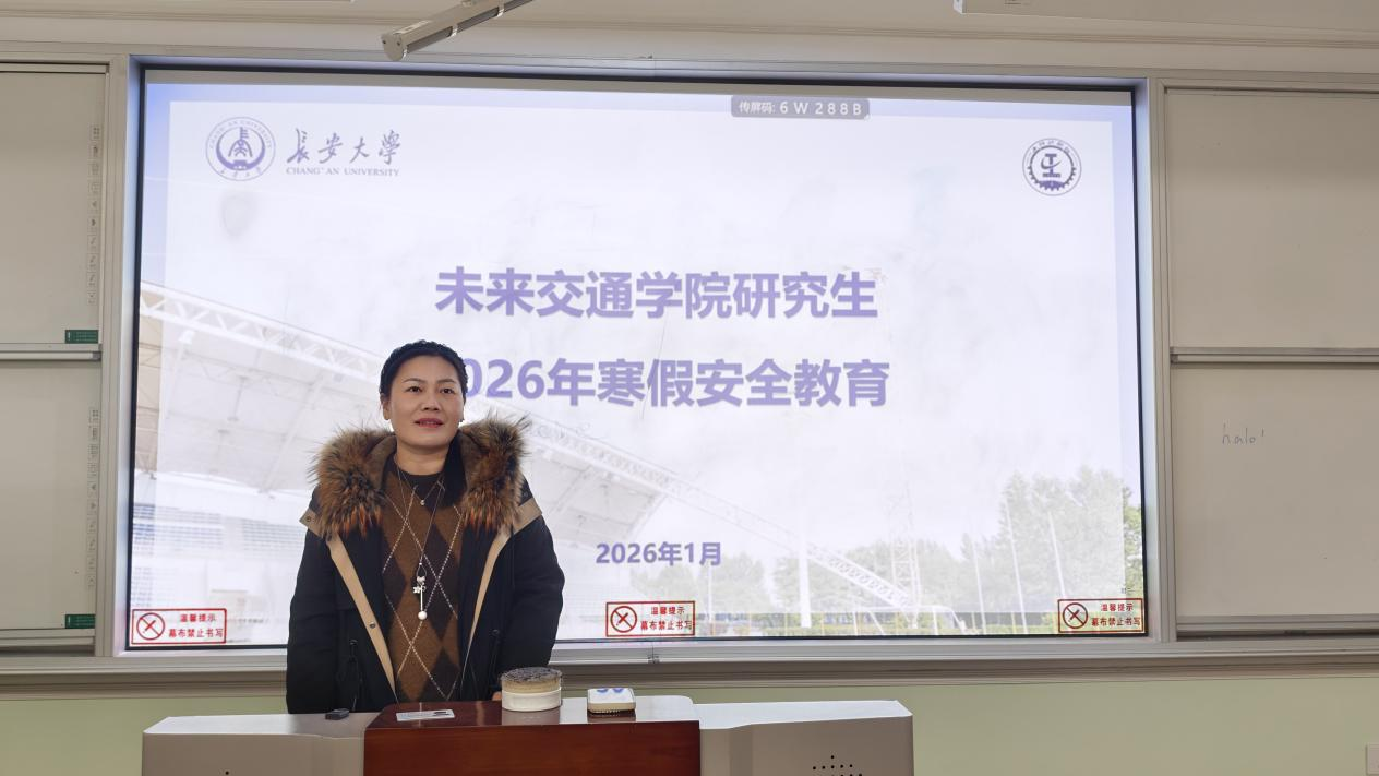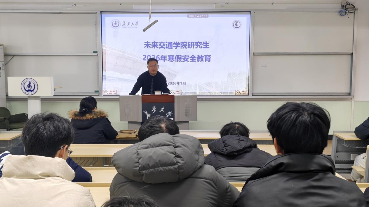在南校区北院B102教室开展研究生2026年寒假安全教育。学院副院长汤颖颖,院学生事务部主任、研究生辅导员刘志兴出席会议,全体研究生以线上、线下形式参加会议。