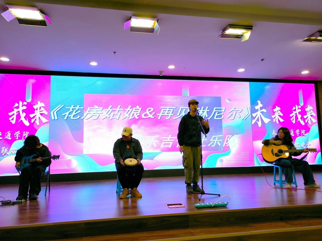 爱乐吉他社带来民谣表演《再见琳尼尔—花房姑娘》。节目既有浓郁的地方特色,又融入了现代音乐元素,为现场增添了一抹独特的色彩。