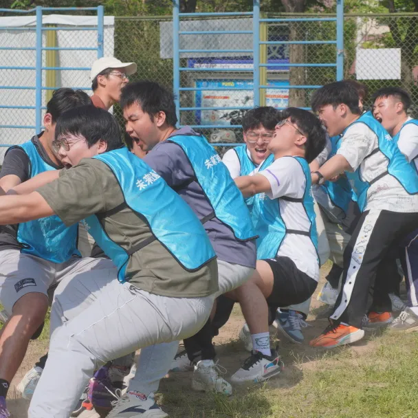 如果说田径比赛是令人紧绷的弦,那趣味项目就是令人放松的线。短绳比赛、拔河比赛、翻轮胎接力赛、20×30米投壶比赛、30×50米接力跑等团队项目在一片欢乐的氛围中展开。低头冲刺、弯腰拾矢、弓身投壶等连贯的技术动作与气势恢宏的鼓声相得益彰,激情与活力在一次次队员们击掌中累积。参赛师生都展现出惊人的爆发力与毅力,稳扎稳打,拼尽全力,展现了勇于拼搏、积极向上的体育精神,吃瓜