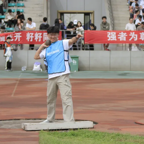 随着镜头的转动,视角来到了田赛赛场,在这里,跳高、跳远、铅球比赛如火如荼进行中,运动健儿脚步轻盈,轻松跳过标杆,铅球从手中飞出,在空中划出一道完美的弧度,优雅落地。在这里,运动健儿们挑战极限,突破自我,为学院增光添彩!