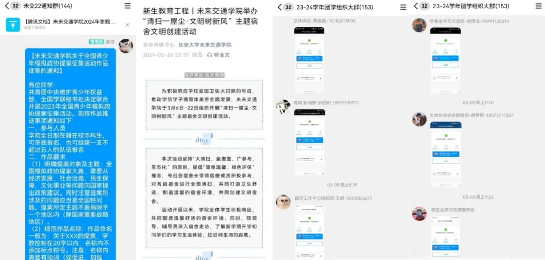 院学生会依托工科青年说、青年讲师团等活动形式为载体,以点带面广泛开展党的二十大精神,面向团员和青年开展学习贯彻习近平新时代中国特色社会主义思想主题教育学习报告会、主题研讨会。围绕重要时间节点,组织开展热议全国两会精神、五四青年节寄语等多种学习实践活动100余次,特别邀请院领导、长安星火宣讲团、专职团干部、“青马”学生骨干培训领航班学员进课堂,实现全院学生覆盖率100%。