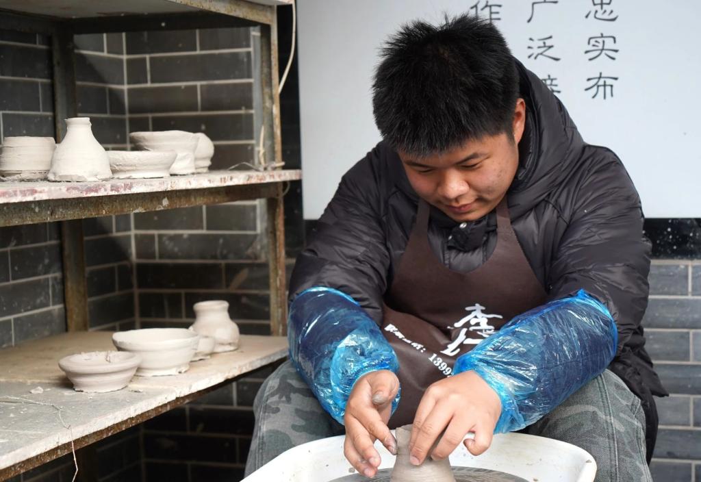 实践队前往李家瓷坊体验非物质文化遗产——耀州瓷烧造。在泥塑体验中,同学们在泥巴成陶瓷坯时,依据心中的构想,从泥团上揪下大小合适的一块,放在陶轮或工作台上。手指轻触泥团,随着手指的灵动按压、推挤、提拉,泥团如同听话的精灵,慢慢有了初步的形状,塑造心中所想。