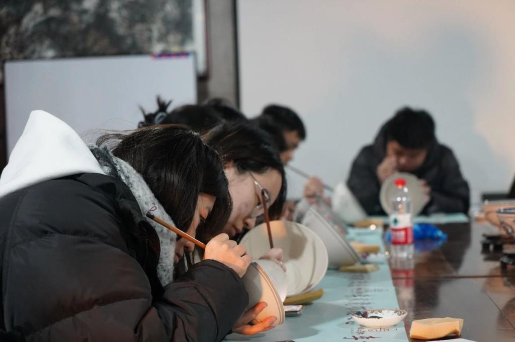 在瓷绘体验中,同学们沉浸于不受外界干扰的宁静时光,全神贯注地凝视着手中的碗胚,用心去感受每一笔线条的韵律,用灵魂去感知每一抹色彩的温度,在洁白的碗胚上,尽情挥洒灵感,勾勒出中国传统纹样或青春符号,赋予了陶瓷以鲜活的生命与独特的情感。