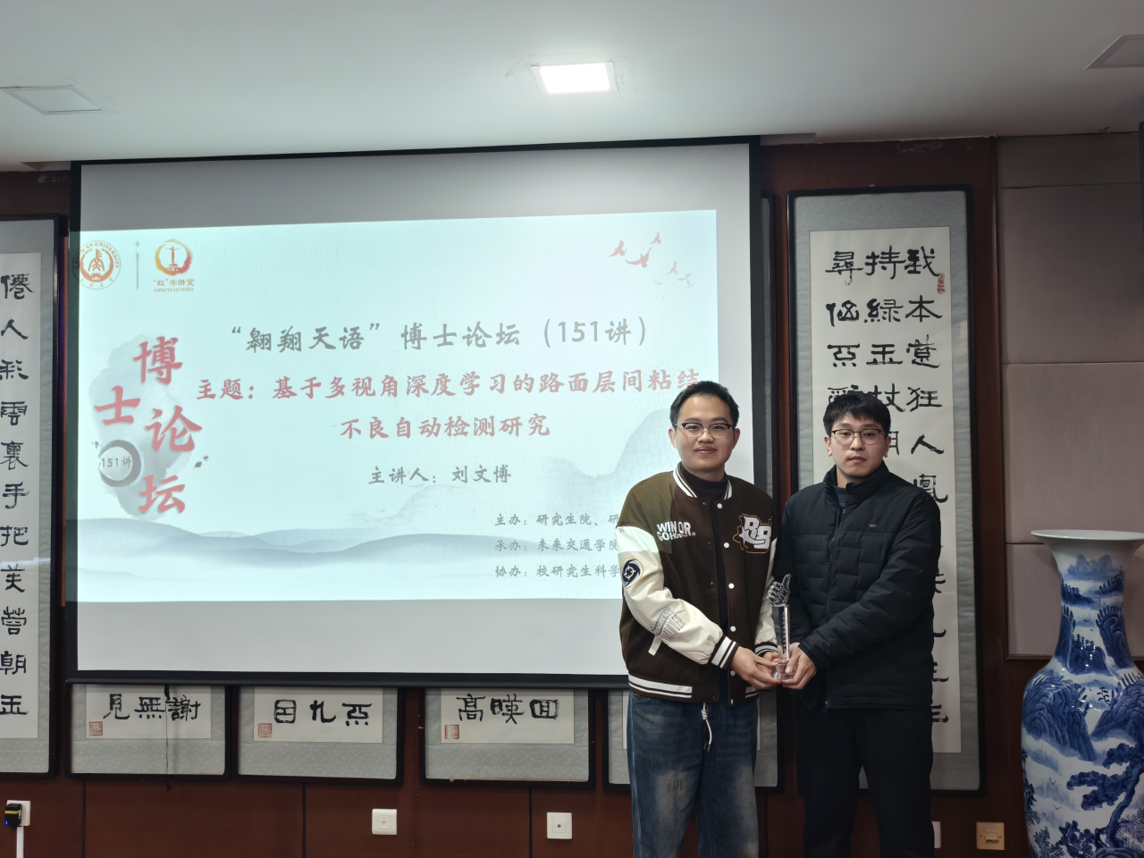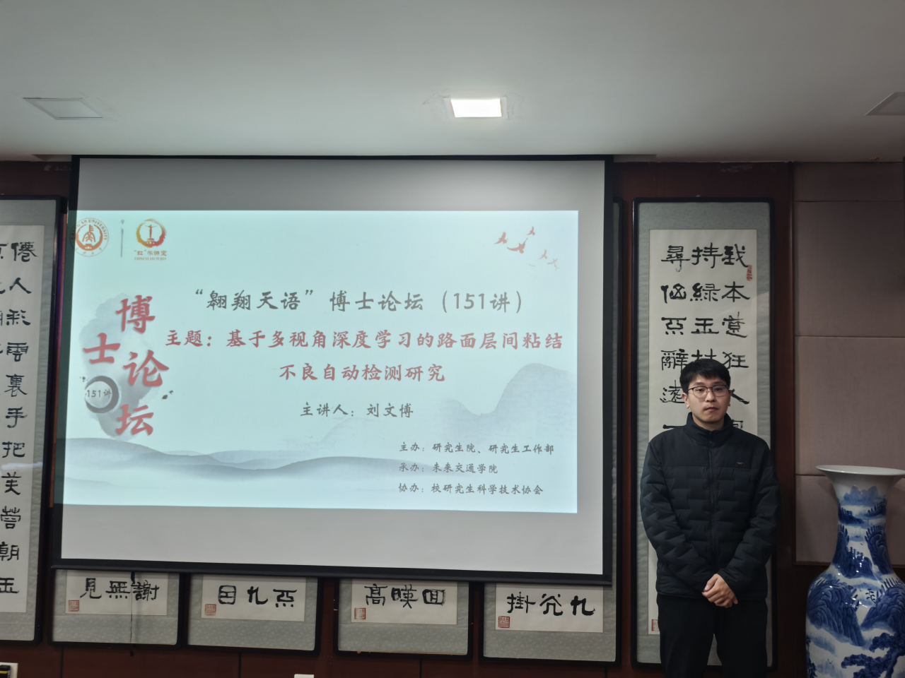 承办,院研究生科学技术协会协办的“翱翔天语”博士论坛第151讲暨“研途领航”系列论坛(第3讲)在南校区北院学术交流中心第五会议室举办。公路学院博士研究生刘文博受邀并作题为《基于多视角深度学习的路面层间粘结不良自动检测研究》的学术报告,学院30余名研究生参加本次论坛。