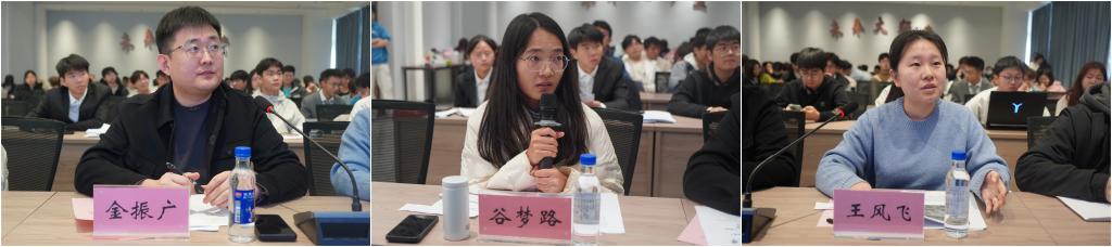 在互动交流环节,评委们对每一件作品的技术路径、创新突破与应用前景进行了专业指导,交流中既肯定了项目的前沿视角,也从行业实践角度提出宝贵优化建议,为同学们进一步完善作品提供了关键指导。