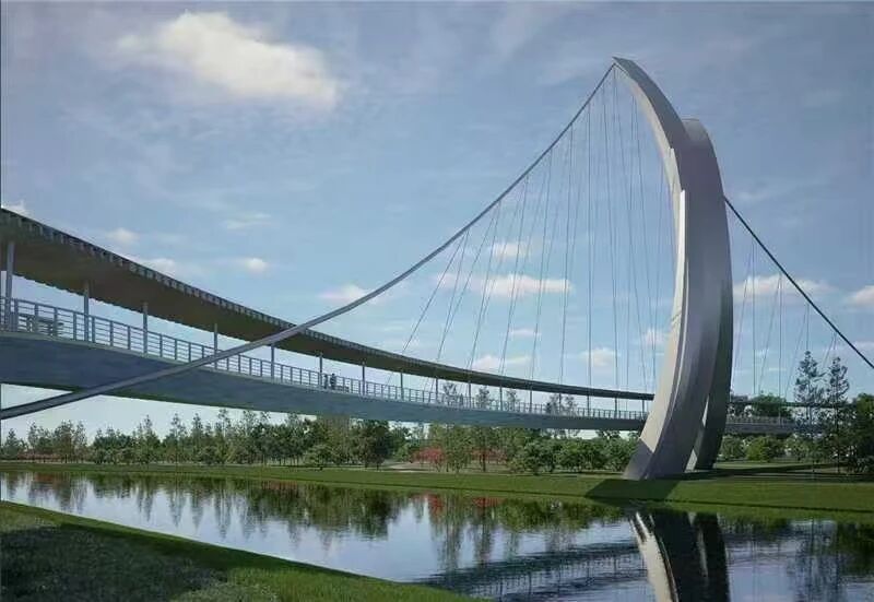 李夏雨、曾羽新,公路学院徐学成与国际交通学院Sebghatullah Basharat合力打造。该方案以现代设计转译海洋壮阔、椰林静谧、丝绸柔美与帆船的进取精神。桥塔取浪起之形,与主缆勾勒“扬帆启航”意象;桥面之上,遮阳棚滤下斑驳光影,将滨海惬意引入城市空间;流畅桥身曲线呼应丝绸之柔,营造“上承丝路、下涌海浪”的漫步体验,诠释“山海相逢”的地域特质。