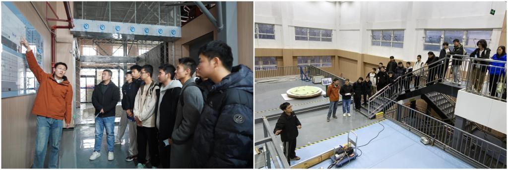 进入实验室,郝键铭围绕实验室的建设历史、发展背景以及其在国家重大工程领域的地位价值展开详细介绍,并结合历史上著名的美国塔科马海峡大桥风致振动事故为例,阐释了开展流体动力学实验研究对于桥梁等超级工程领域相关风力灾害预防的必要性,进而强调了通过风洞实验制定科学建桥预案的关键意义。
