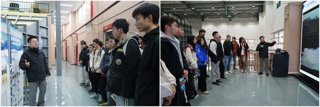 学院2025级硕士研究生张子昊、郭嘉炜结合其研究方向,展示其自主搭建的“极端风暴流模拟实验平台”,通过实际操作与数据展示,让在场师生直观感受到极端风场对桥梁结构的潜在影响,深化了大家对风荷载作用复杂性与重要性的理解。