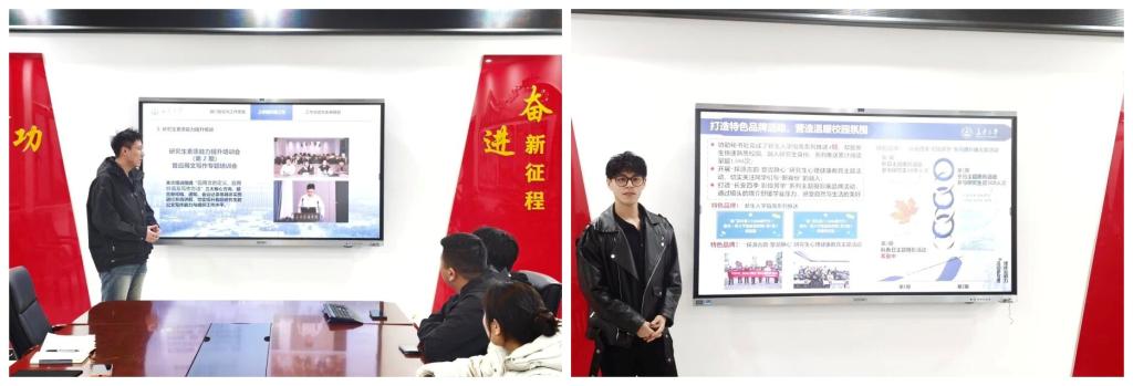 研究生会主席团成员张子昊和新媒体运营中心主任王桂文分别从活动开展和宣传工作两方面展开分享。张子昊详细讲解了活动从策划、筹备到落地的全流程把控经验,强调了“细节把控、高效协作”在活动开展中的重要性;王桂文分享了院研会宣传矩阵的搭建、宣传内容的创作技巧,以及如何通过精准宣传扩大研会活动影响力、提升研会知名度的实践经验,为双方优化宣传工作提供了有力参考。