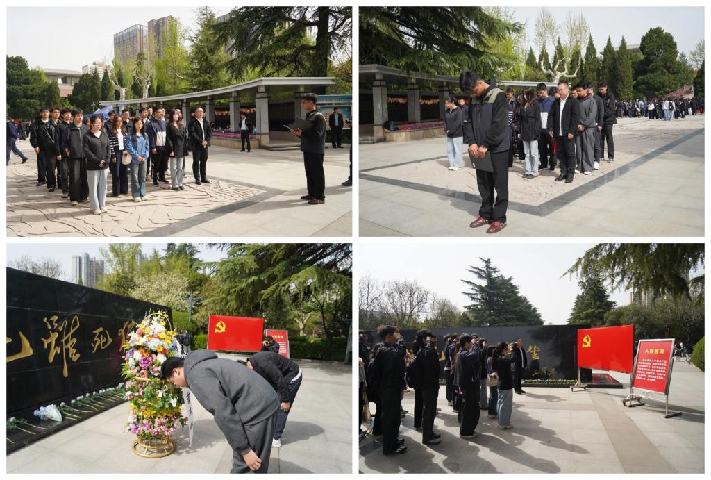 全体师生整齐列队于英烈广场,向革命先烈默哀致敬,并敬献花篮。朵朵菊花寄托哀思,深深鞠躬饱含敬意,现场气氛庄重而肃穆。在鲜红的党旗前,全体成员庄严宣誓,铿锵誓言在广场上空回荡,表达着新时代青年继承先烈遗志、砥砺前行的坚定信念。