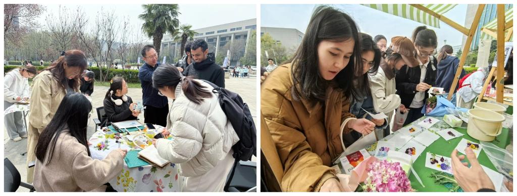 完成创作后,同学们纷纷与自己的作品合影留念,现场气氛温馨而愉快。本次活动以自然为媒,以艺术为桥,为同学们搭建起放松身心、感知自然之美、记录成长瞬间的艺术疗愈平台,在繁忙的学习生活中守护同学们的心灵健康,以温柔而有力量的方式滋养心灵。