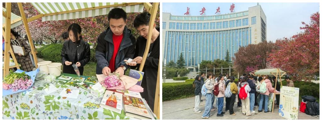 彩虹心理协会于3月25日中午在北校区逸夫图书馆前举办“叶脉心印”植物拓染暨“年轮记录站”艺术疗愈实践活动(第5期)。学校心理健康教育与咨询中心主任张芳宁、副主任张石磊及部分老师参与本次活动,活动吸引了来自学校各学院近200名学生参与。