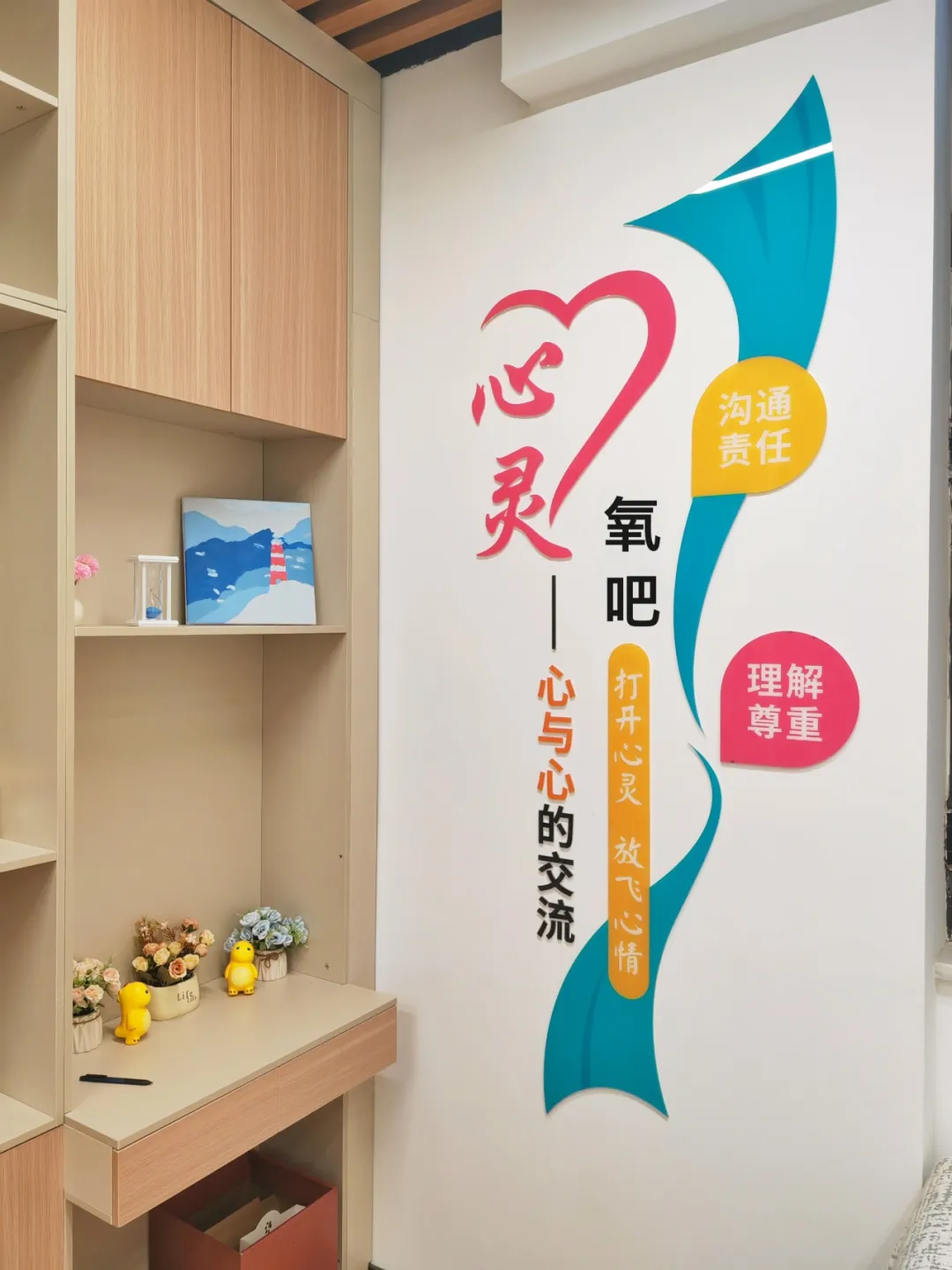 “心灵氧吧”位于北校区弘毅大厦11层,为未来学子营造了一个充满生命力的温馨空间,能有效调节学生心理状态,带来优质心理体验。