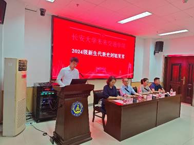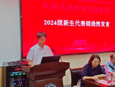 统考研究生代表胡浩然发言。他表达了对未来研究生生活的憧憬和期待,认为要将个人的理想追求融入到国家和民族的发展大局之中,用所学知识解决实际问题,为祖国和社会的进步贡献自己的智慧和力量,最后他引用“锲而舍之,朽木不折;锲而不舍,金石可镂”这句古语来勉励大家保持初心,坚持不懈。