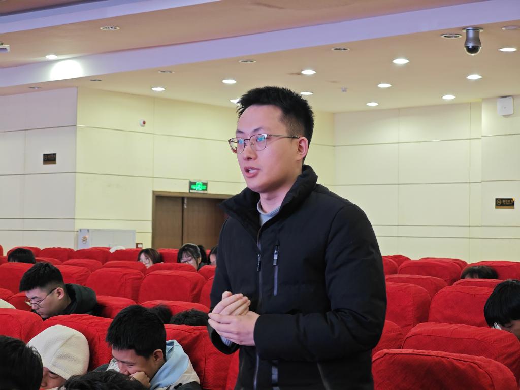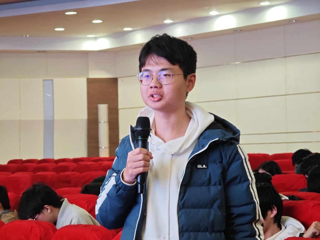 在互动环节中,现场的学生们展现出了极高的热情与求知欲,纷纷举手提问,就新时代创新人才培养的路径、方法以及面临的挑战等多个方面向漆思教授请教。漆思教授耐心细致地解答了每一位同学的问题,不仅提供了宝贵的见解,还鼓励同学们勇于探索未知,敢于质疑,培养独立思考的能力。此外,漆思教授还贴心地向同学们推荐了《论语》、《孟子》、《老子》、《庄子》、《近思录》、《传习录》以及《六祖坛经》等蕴含深厚智慧与哲理的经典之作。通过全面深入研习经典,拓宽同学们的视野,引导大家深入理解创新人才成长的基本逻辑与可行路径,实现文理融通、道术互促,从而有助于点亮心灯,激发同学们的创新思维与想象力,最终做到心明眼亮、知行合一,做到悟大道、修大德、立大志、成大才。